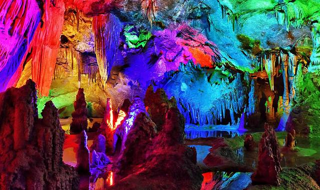 情人桥旁便是猿王洞,看着洞内五光十色的景致,也让人不自觉的想要留下探索自然的奥秘,更何况在外面严寒的天气下,洞内还是暖洋洋的,更是让人流连忘返。