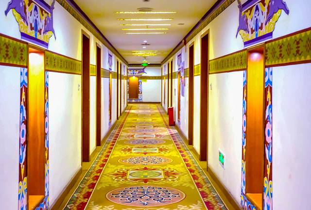 从缆车下来后,入眼便是一个大广场,我们晚间的住宿地西羌酒店也正在此处,广场中央是一个大大的篝火堆,仿佛还能得见夜间的热闹,我们办理好住宿后,放下行李,简单的收拾后便在酒店餐厅用过午餐,便开始向着山上走去。