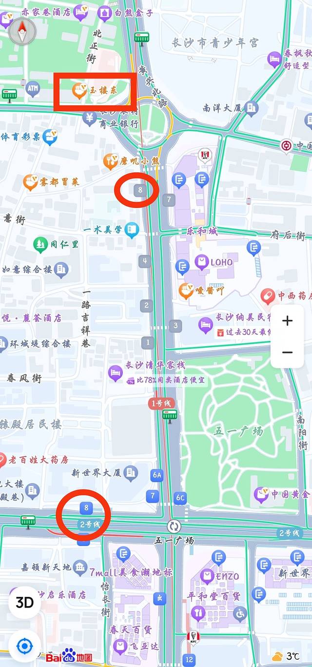 ps:我看地图,离玉楼东最近的是五一广场8号地铁口,我们从橘子洲回来直接从8号口出站,发现不对啊,咋还那么远。