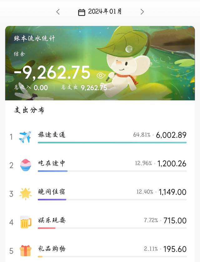 记账的事情甚至在旅游的时候没有告诉小朋友,我自己偷偷记的😂不过记账总数是两个人的花销。有意打探每一笔支出然后晚上偷偷记下来~