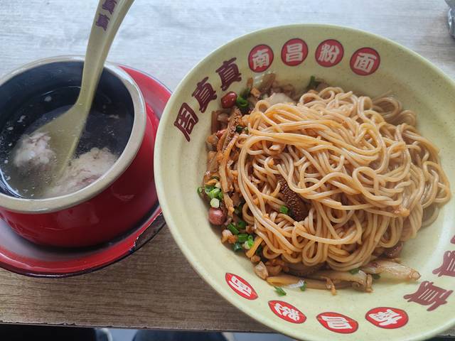 拌粉和瓦罐汤的组合在南昌很常见,我觉得口味还好。瓦罐里的肉丸挺软的,和汤一起入口有点咸,这时候夹一口粉面就刚刚好。