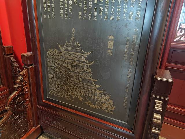 滕王阁内部,有之前各文人墨客题过的诗句及字画。
