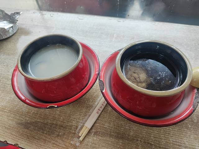 瓦罐汤默认是有一个肉丸的。左边是皮蛋瓦罐汤,汤色更白一点,右边是原味瓦罐汤。
