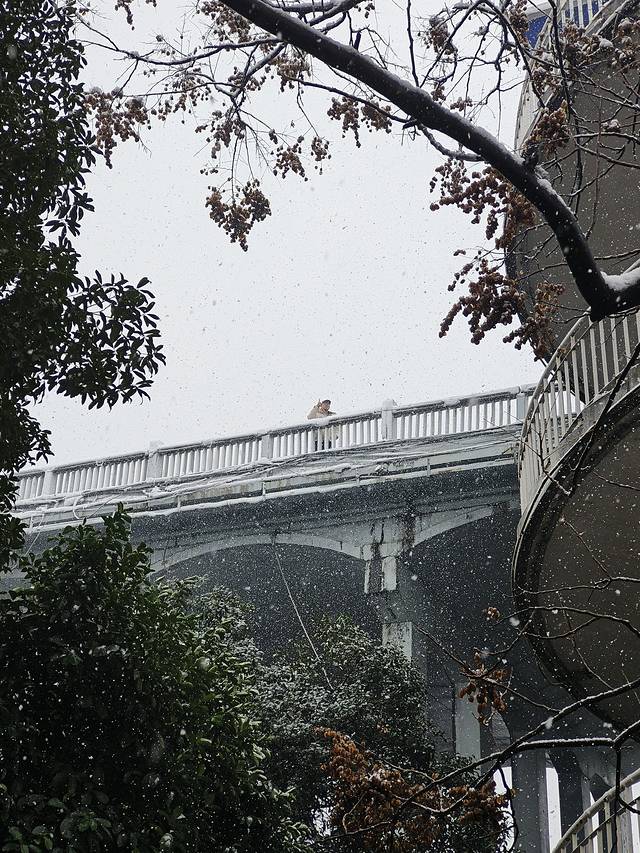 结果到了楼梯口发现锁了,上面写着“雪天路滑,为了安全此处关闭”,我不得不一边吐槽着楼梯上这点雪都没有我们那边天桥楼梯的多,一边又从车行道上转好几圈走上了桥。