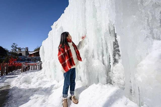 下索道后,可乘坐带有“巴小虎”的观光车到灵官庙和关楼,一定要打卡这里的冰雪奇缘“同款”冰瀑,照片一出绝对刷爆朋友圈!