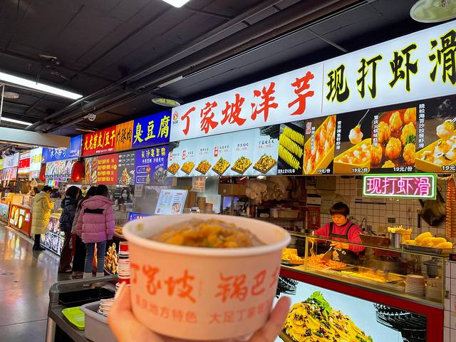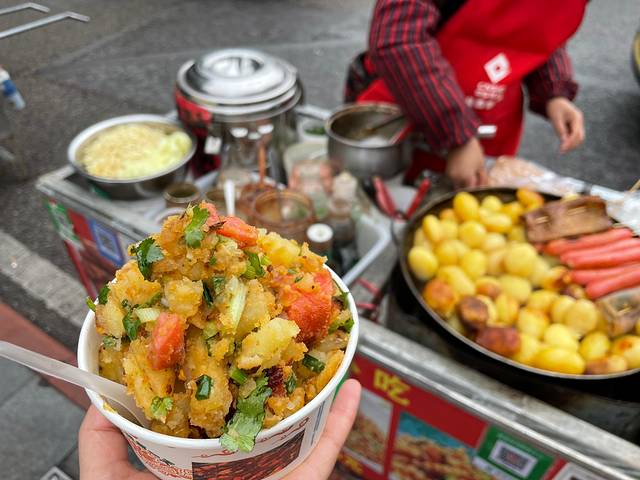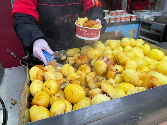 冒尖一盒煎土豆,外焦里糯,我们加了根肠,好吃。没想到我们来趟四川,吃了最多的土豆。
