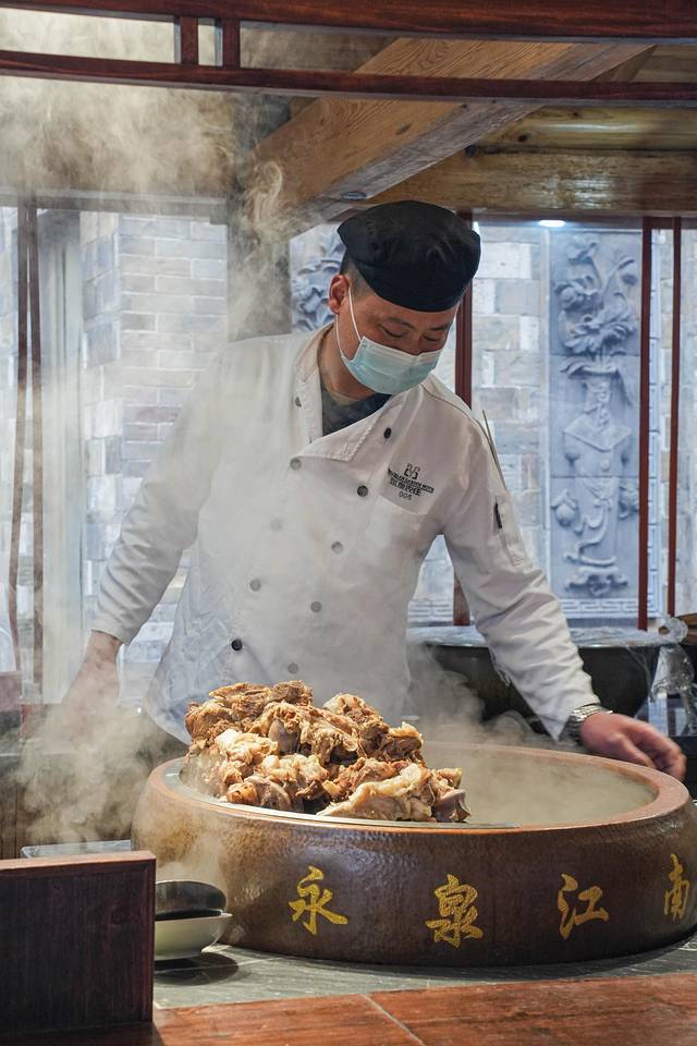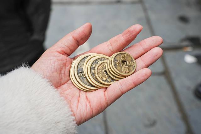 景区内有一条“江南味道”小吃街,与其他小吃街不同,这里需要在钱庄换上一包铜钱,再用铜钱去购买美食。在“江南味道”可以换上一身汉服,体验古人逛市集的乐趣。