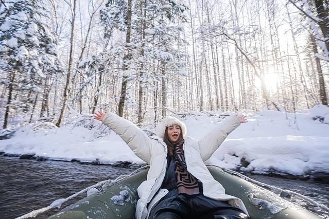 我们下午一点出头去的,根本不用排队,也只有我们一对人去。去漂流点的路上还是冰雪比较多的,开车的时候一定要注意车速小心驾驶。
