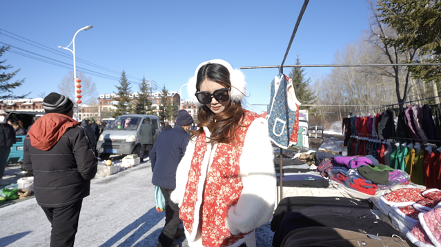 还有东北特色的花棉袄卖,价格不合适,没有买。