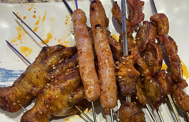 今天的晚饭来到了阿郎烧烤,不得不说东北的烧烤食材是真扎实。量很大,两个人花了💰162 没有吃完,但是吃起来是有点偏咸的。来吃的朋友们可以根据个人口味跟服务员讲。
