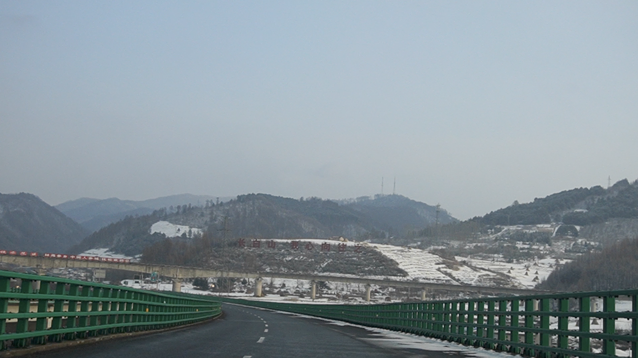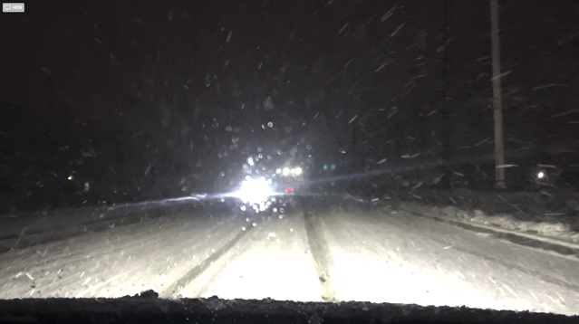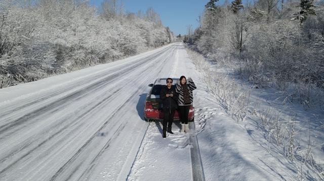 经过通化之后,地上和路两侧的积雪开始变多。比较滑,一定要小心驾驶。