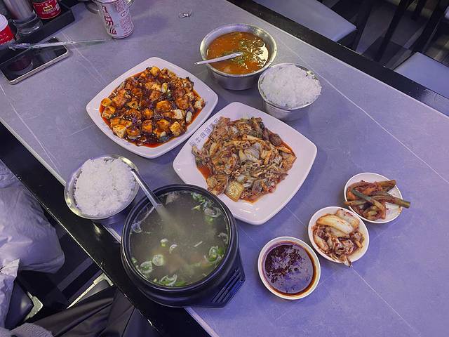 收拾好东西安顿下之后,开车去抚松县城吃饭。从酒店开到县城不到20分钟。路上还算比较好开。到了县城之后,去吃很有朝鲜族特色的稣同牛肉汤饭。