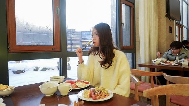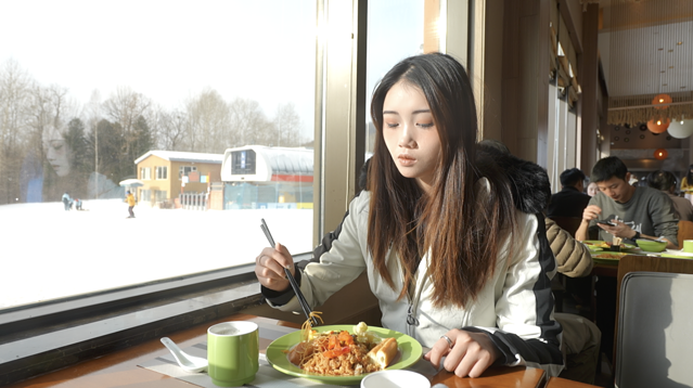 酒店前台就可以扫码预约,然后办理雪票。办完之后我们就拿着雪票吃早饭去啦。
