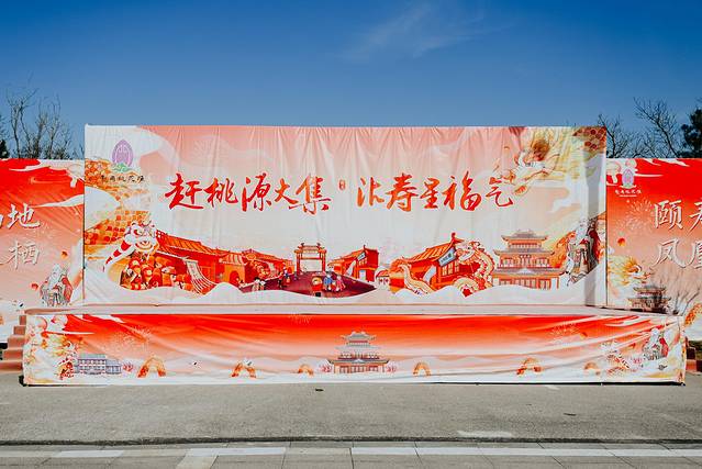 桃花源牌坊前,是一个巨大的舞台,春节期间这里都会有舞蹈,唱歌等各种精彩的表演,可以感受这里新年的热闹气氛。