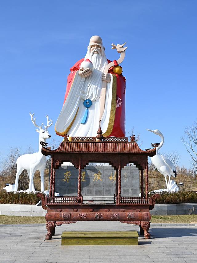 寿星广场,寿星公高12.9米,慈眉善目,手捧 仙桃 ,两侧是鹤和鹿,坐镇桃花源,寓意着健康、 长寿 、吉祥的美好寓意。新年期间会有别开生面的龙年马戏,新年祈福仪式舞蹈更是热闹非凡,载歌载舞,欢庆佳节,希望新的一年都能平安顺遂。