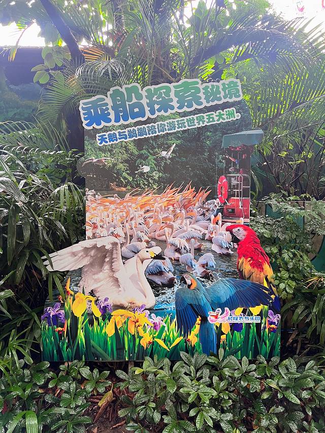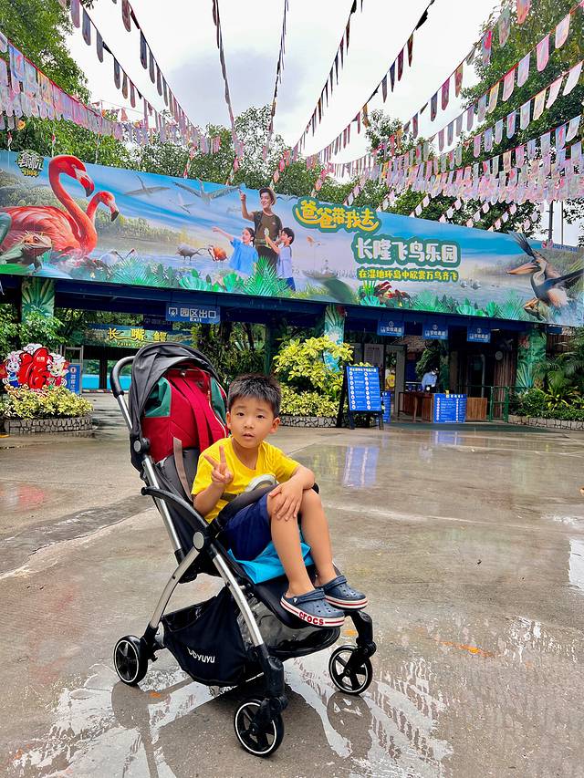 由于孩儿妈属于恐鸟人士,不敢去飞鸟乐园,所以今天各自行动,妈妈自己去欢乐世界嗨玩,爸爸带儿子去飞鸟乐园,一到飞鸟乐园门口就看到广告牌上写着“爸爸带我去长隆飞鸟乐园”🥰真是太应景了!