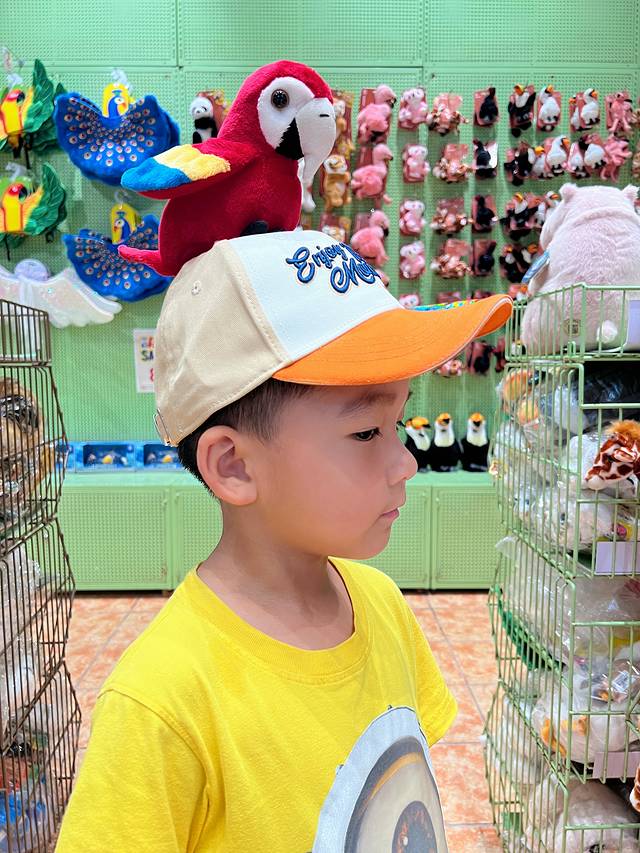 乐园商店里的小鹦鹉棒球帽好好看,价格也不贵,而且还能打8折😍