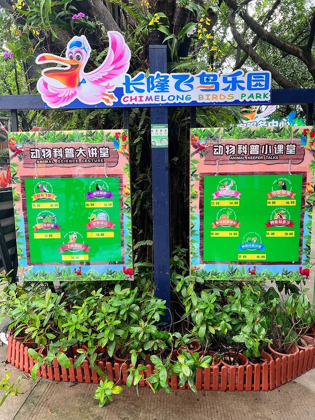 百鸟飞歌:11:30 15:30(必看的表演,各种鸟成群结队的飞来走去十分壮观,正对长隆logo或舞台偏右位置观感更佳)
