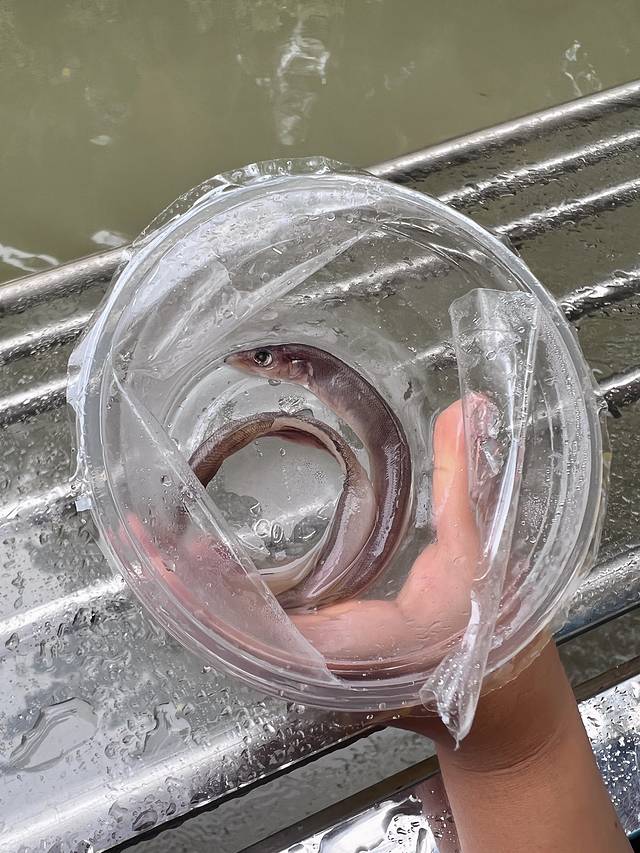 乘船检票处买的喂鹈鹕的小鱼,10r一份