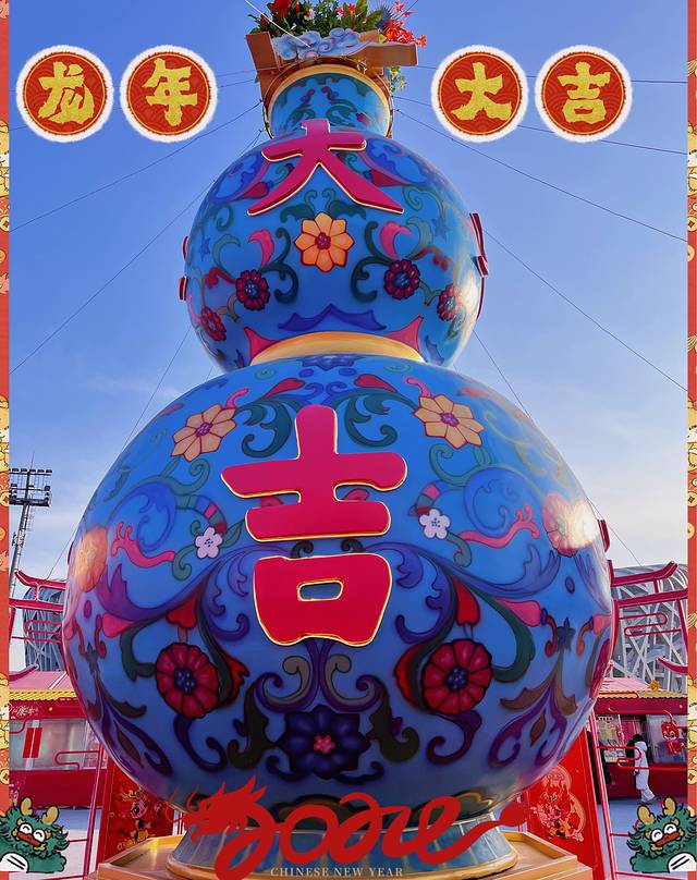 近9米高的大吉葫芦,高度复原的故宫馆藏是乾隆最喜欢的大吉葫芦之一,围绕大吉葫芦逆时针转三圈🉑退水逆,顺时针转三圈🉑应万福