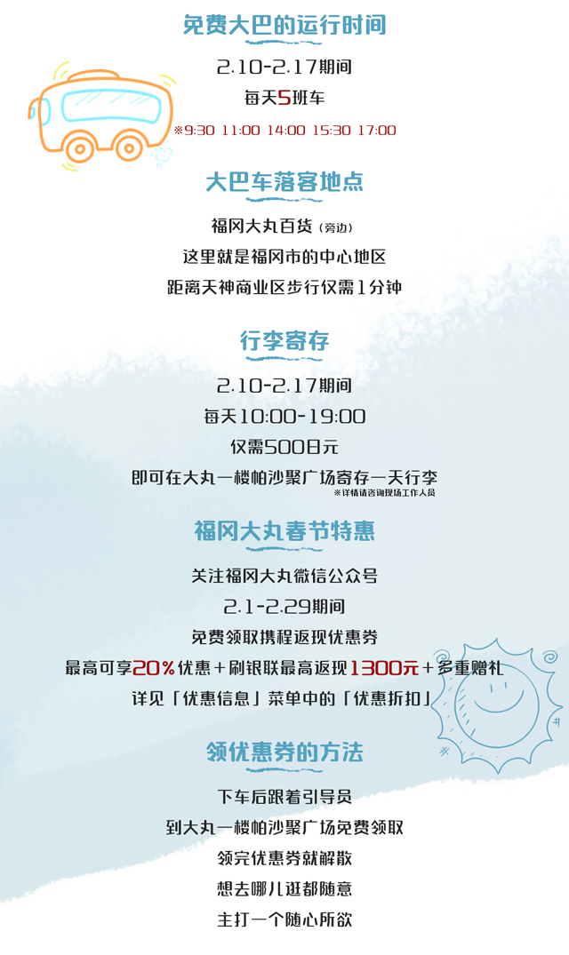 1.免费大巴的运行时间:2/10-2/17期间,每天5班车。