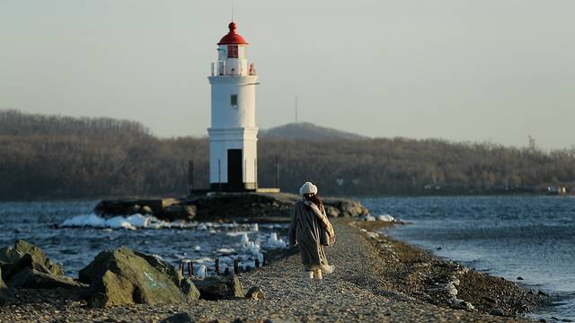 托卡内夫灯塔是因为电影《七月与安生》而被国人熟知的灯塔。位于符拉迪沃斯托克港入口处,伊格瑟尔德半岛的西南,从市区打车前往不是很远,而且我们去的时间正处于下午,没有太多的游人。夕阳照耀下的灯塔非常美,空气中除了风声也非常的安静。但是冬天的天气确实有一些刺骨,尤其灯塔四周也没有可以挡风的地方。待了一会冷的受不了,正好天也要黑了,我们就直接打车回到城里去吃晚饭。