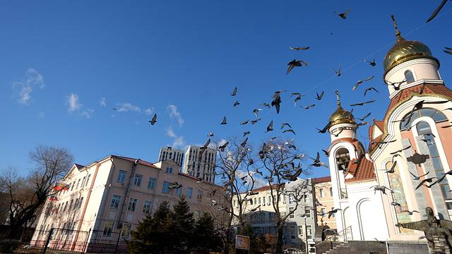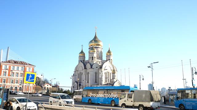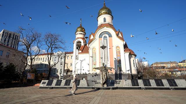 海参崴胜利广场也叫远东苏维埃政权战士纪念碑广场,它不仅是该市的市中心,还是该市的政治中心、文化中心、交通中心和商埠中心。广场的东面是一座大教堂,南面是海,西面是政府大楼,北面是最大的古姆百货商店。