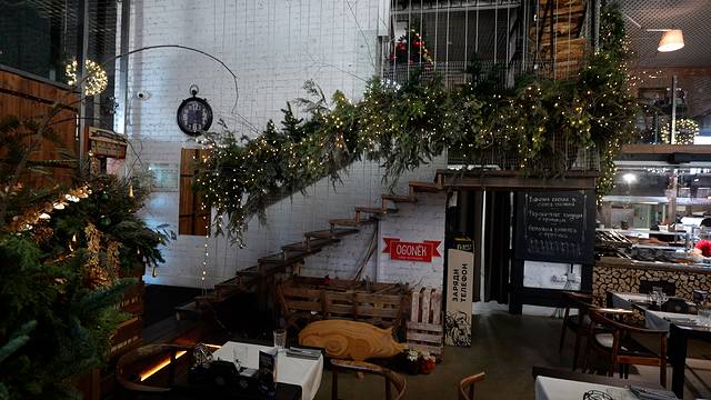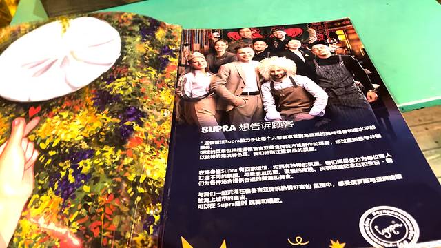 到了Supra,无论内外的装修风格都非常有斯拉夫特色。海参崴的餐馆刚进门处都会有门童接过你的外套,然后给你一个牌牌。吃完饭再拿着牌牌来取衣服。这样也不错,不至于在椅子上搭着大衣搞的十分狼狈。