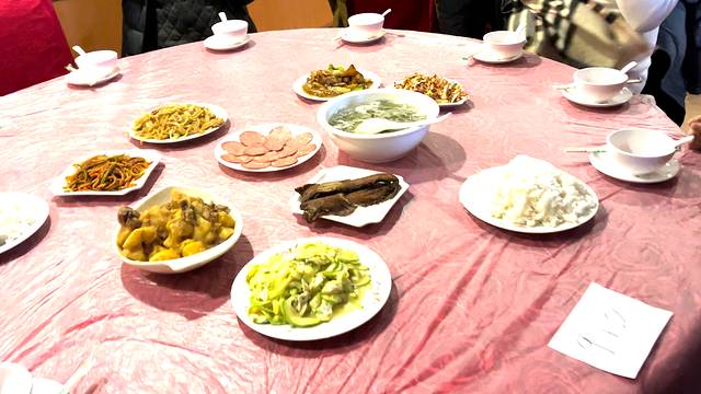 中午跟旅游团一起吃一顿团餐。菜色比较简单,好在米饭管够。