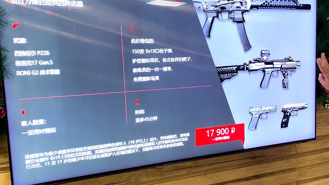 到了前台查看过护照,填写表格后就开始选择套餐。我们一共选了两个套餐,一个6000卢布包含3把枪和30发子弹,一个17900卢布包含3把枪和100发子弹。合人民币一共💰1900左右。不到两千块能体验这么多发子弹的标准口径武器射击,虽然是在室内也是很划算了。