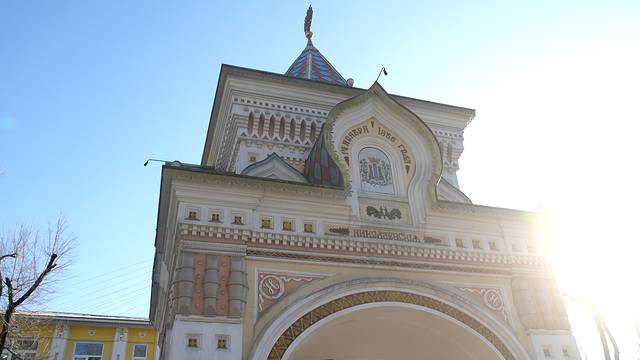 它与俄罗斯远东大铁路建设同步,历史上该火车站建筑经过了几次改造,该俄罗斯火车站大楼是按照弗科诺瓦洛夫的方案于1912年建成。它外观精美古朴,充满贵族气息。主入口采用三联拱门形式,屋内为冰刀状屋顶,有许多小帐篷顶点缀其中,给人以复杂多变的视觉美感。