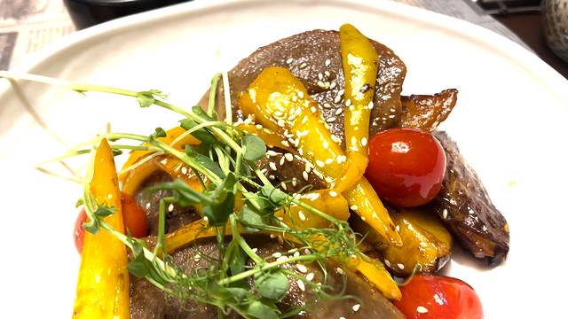 点了猪排、甜品和格鲁吉亚饺子。格鲁吉亚饺子很像国内的灌汤包,还有樱桃馅的只是我们没敢尝试。甜点很好吃,甜而不腻,奶油也不是特别的甜。猪排很嫩,但是肉并不厚。整体吃下来还是很有当地特色的。