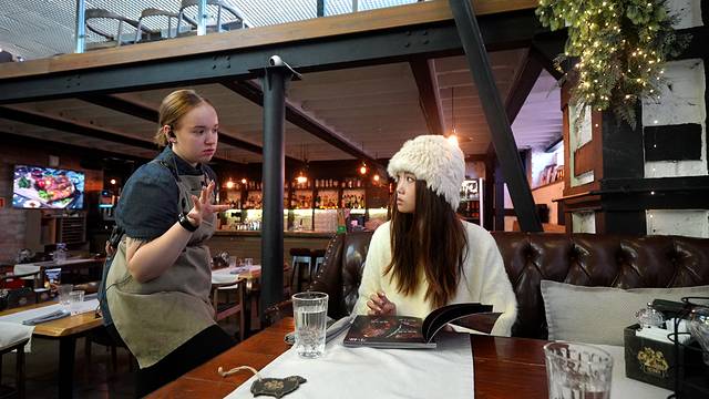 他们有各种语言的菜单,服务生会询问你的国籍,然后根据国籍来给你不同语言的菜单。