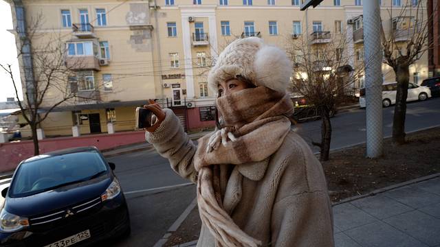 当地时间8点多,大巴终于到了海参崴城区。我们从下车点走回定的酒店。虽然距离不远走路只要5分钟,但是在这零下十几度而且风力很强的的天气里走路也是一件需要很大勇气的事情。