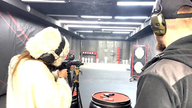 教练是俄罗斯的大胡子,助教小哥哥会说一些简单中文,这样沟通起来就很方便。不光可以体验靶纸射击和室内速射,而且还可以体验自己装子弹。武器都给准备好之后就可以开始射击了。
