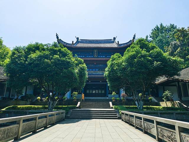 前殿:弥勒殿,又称三圣殿,面阔三间,外檐方柱,内檐圆柱,均为花岗石整石凿成。殿内供奉西方三圣,现已无存,重塑弥勒佛、韦驮菩萨、四大天王