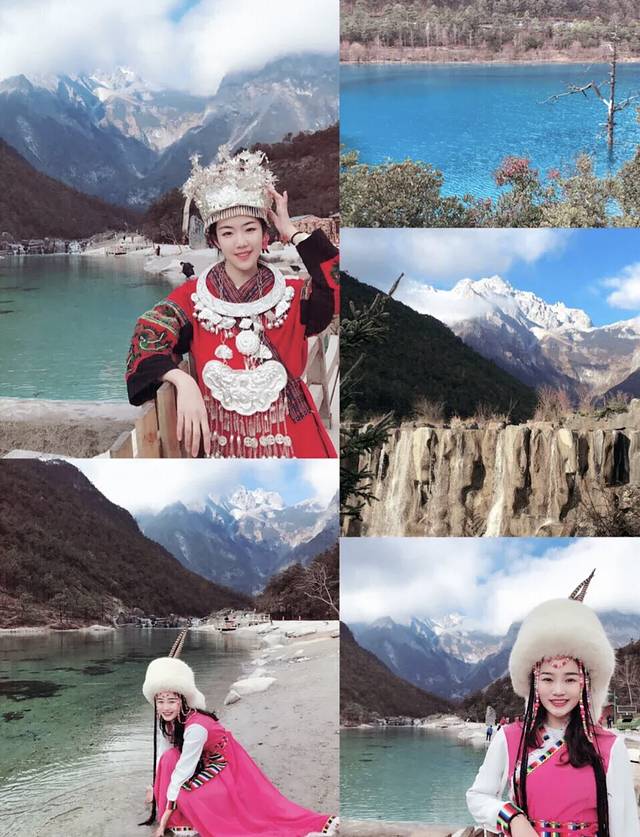 拍照提示计雪山下蓝月湖旁有租民族服装拍照的20/位,非常便宜!闺蜜行绝不可错过!
