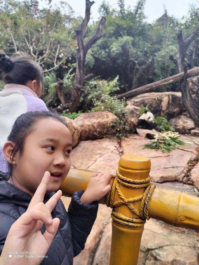 对于小朋友来说,大熊猫是最期待的,熊猫妈妈菊笑一生三胎,酷酷、萌萌、帅帅,我们在展览馆看到了他们的成长过程,还看到了他们的真身。他们抱着竹子,憨态可掬地坐着,不停地吃呀吃!老兄,该起来活动了,保持身材哟!(还有一张是萌萌和萌萌的合影)