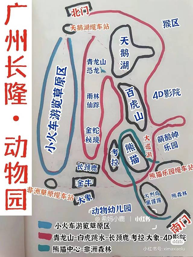 第二天我们一大早就前往长隆野生动物园,提前了一个小时排队,专门做了攻略,从南门进入,以下是长隆的地图和表演时间。
