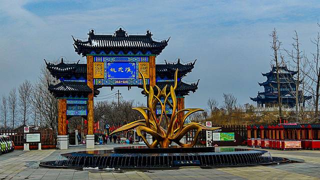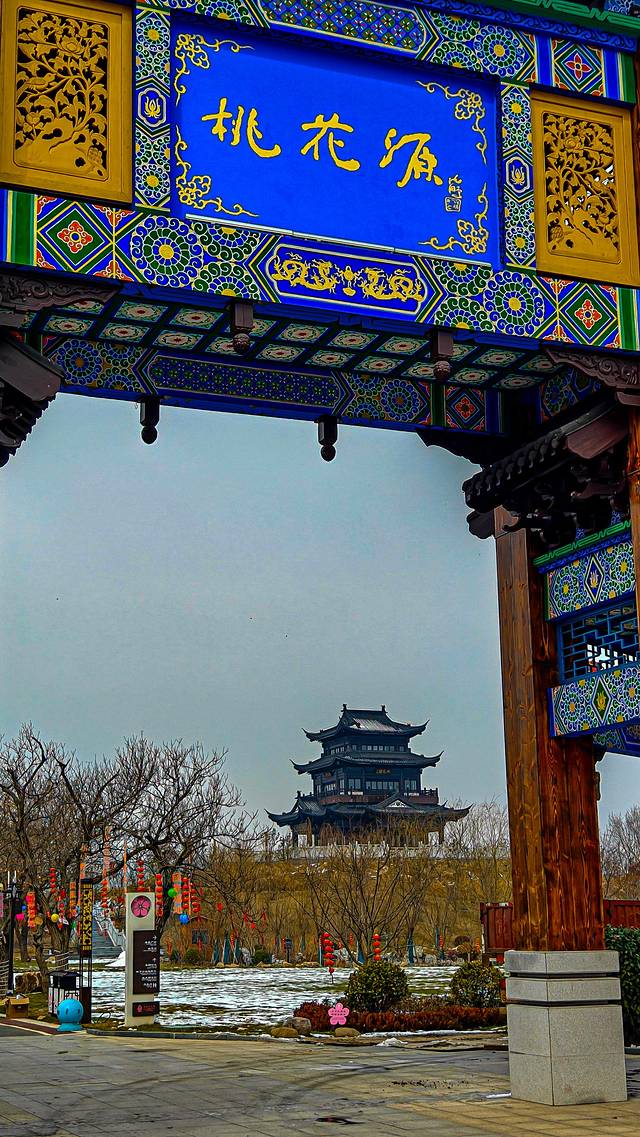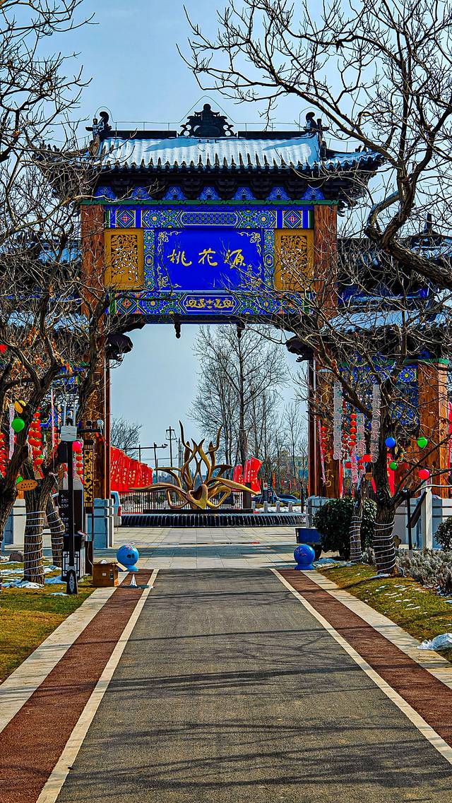 盐城因盐得名,已有2100多年的建县史和1600多年的建城史,而千年古镇龙冈同样有着丰富的历史传承和非物质文化遗产。进入桃花源景区就可看到【桃花源牌坊】,两侧的对联“野水碧于草,桃花红照人”就是景区的生动写照。