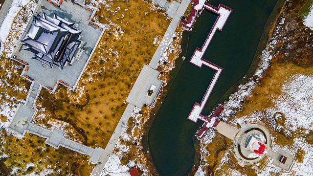 然后登上桃花阁,登高望远,雪后的龙冈桃花源更多了一份宁静祥和。