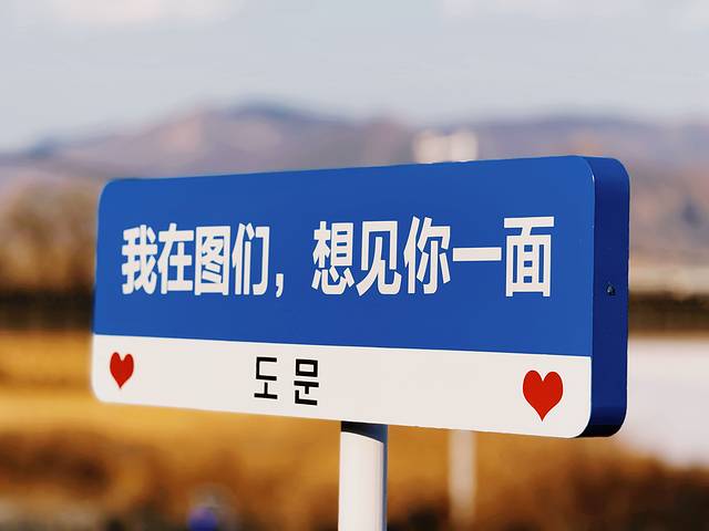 🎡图们,边境小城,不需要门票,交通很方便。延吉到图们一天很多躺高铁,11块15分钟左右就可以到,出站后右边有9路公交车,2块20分钟左右直接开到终点站图们口岸。一趟高铁很多人都是奔图们口岸去的,公交坐满就走,基本中途没人上下车,很快就到口岸站,往右边走个300米左右就到国门→我在图们很想你路牌→86号界碑→对面有个小路上上观景台看对面的朝鲜。记得一定要拉镜头看对面值守的朝鲜军人踢土各种小动作,可有意思了。还可以蹭一下周围有导游讲解的,对面是朝鲜南阳市,和房子分别住的是什么人,9个蓝色房子住的是高干,高楼是军人,没有窗,没什么人住,为了存矿(没太听清楚),1层平楼才是普通人住,以上纯属蹭听,如有不对,欢迎留言改正。