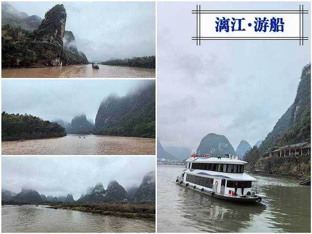 旅程的第4日,我们离开桂林,坐船前往阳朔。都说“桂林山水甲天下,阳朔山水甲桂林”,漓江的精华地区也就是“兴坪前后”的那一段江面。天工不作美,上午依然是阴雨连连,当然了,烟雨之下的漓江山水,更有了水墨山水的意境。只要不怕冷,站在三楼的甲板上,静静的看,是一场非常舒服的洗礼。