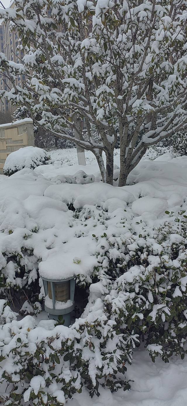雪下了一夜,清晨起床先看窗外,千里冰封,万里雪飘。小区人工湖厚厚的冰面上也被皑皑白雪覆盖了。