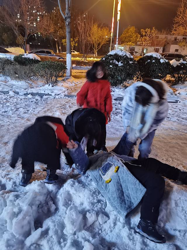 物业开启集体铲雪模式,今天小区有喜事,新人结婚