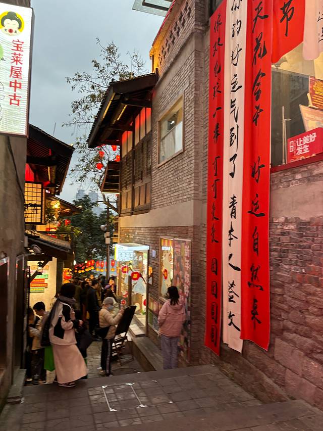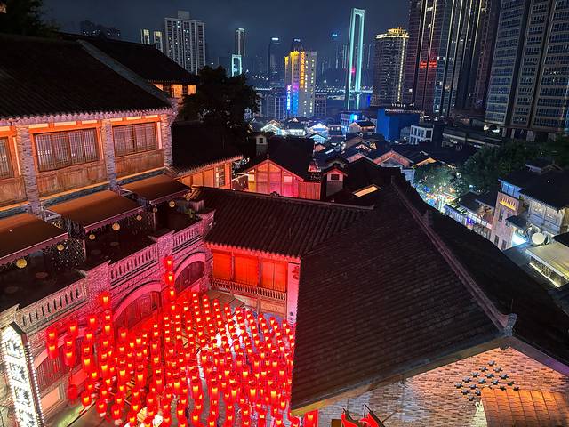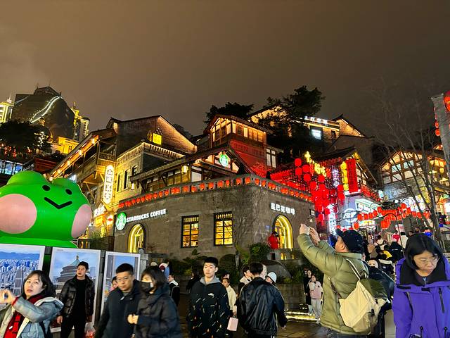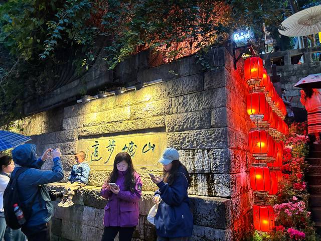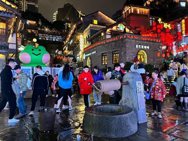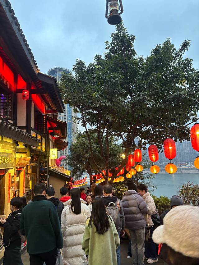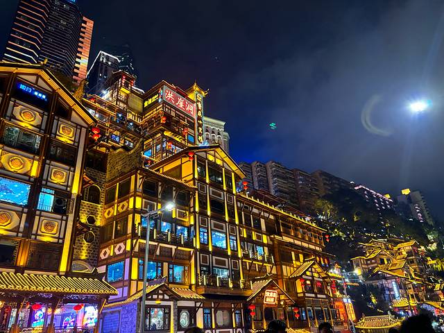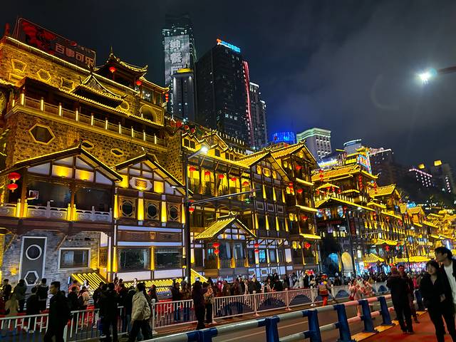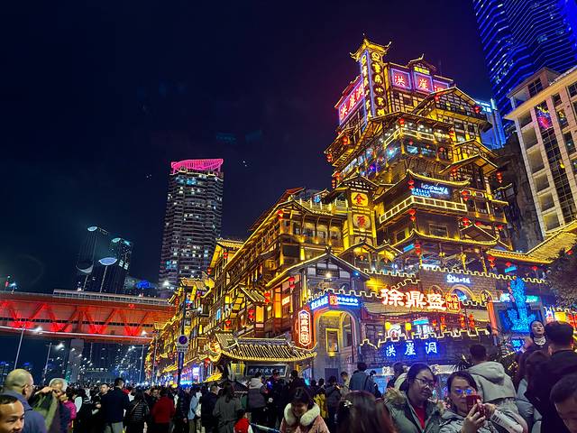 修整好了 人也少一些 便从民宿走去洪崖洞 十一点人还是很多 还有好多拍照的小姐姐 十二点往回走的时候 灯都关了 拍照的人还是很多