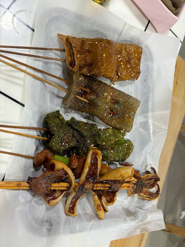 串串对面就是烧烤店 点了想吃的苕皮和豆干 价格也很友好