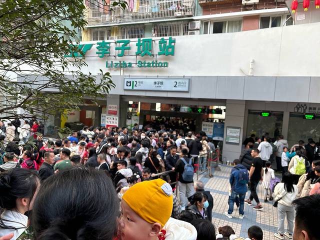 到李子坝站 不是经典的打卡机位 但也是看到了好几辆穿楼的轻轨 从上面可以看到经典拍照点真的密密麻麻好多人 我还专门录了下来