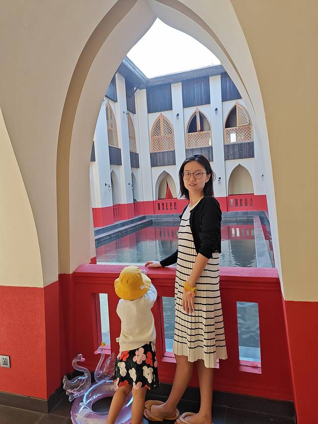在酒店门口。赶紧给今天这一身的穿搭留个记录。带孩子出来玩,根本没时间给自己拍照。