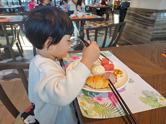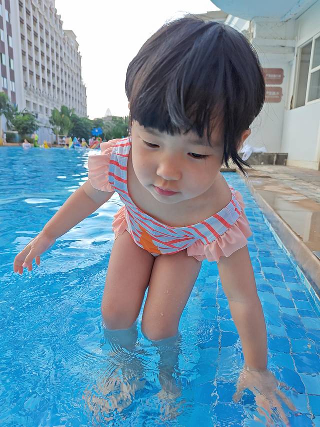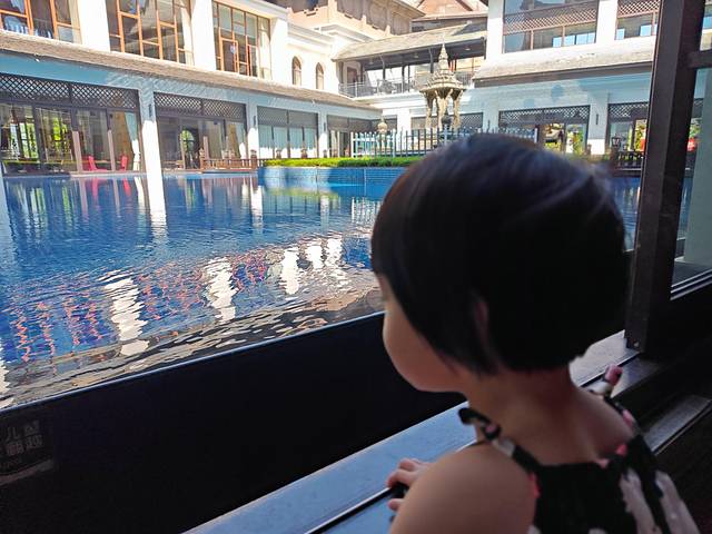 中午在酒店门口的曼飞龙烤鸡买了一份午餐回去吃。吃完小孩还不困,一直折腾,我们就去了酒店五层顶楼的游泳池。